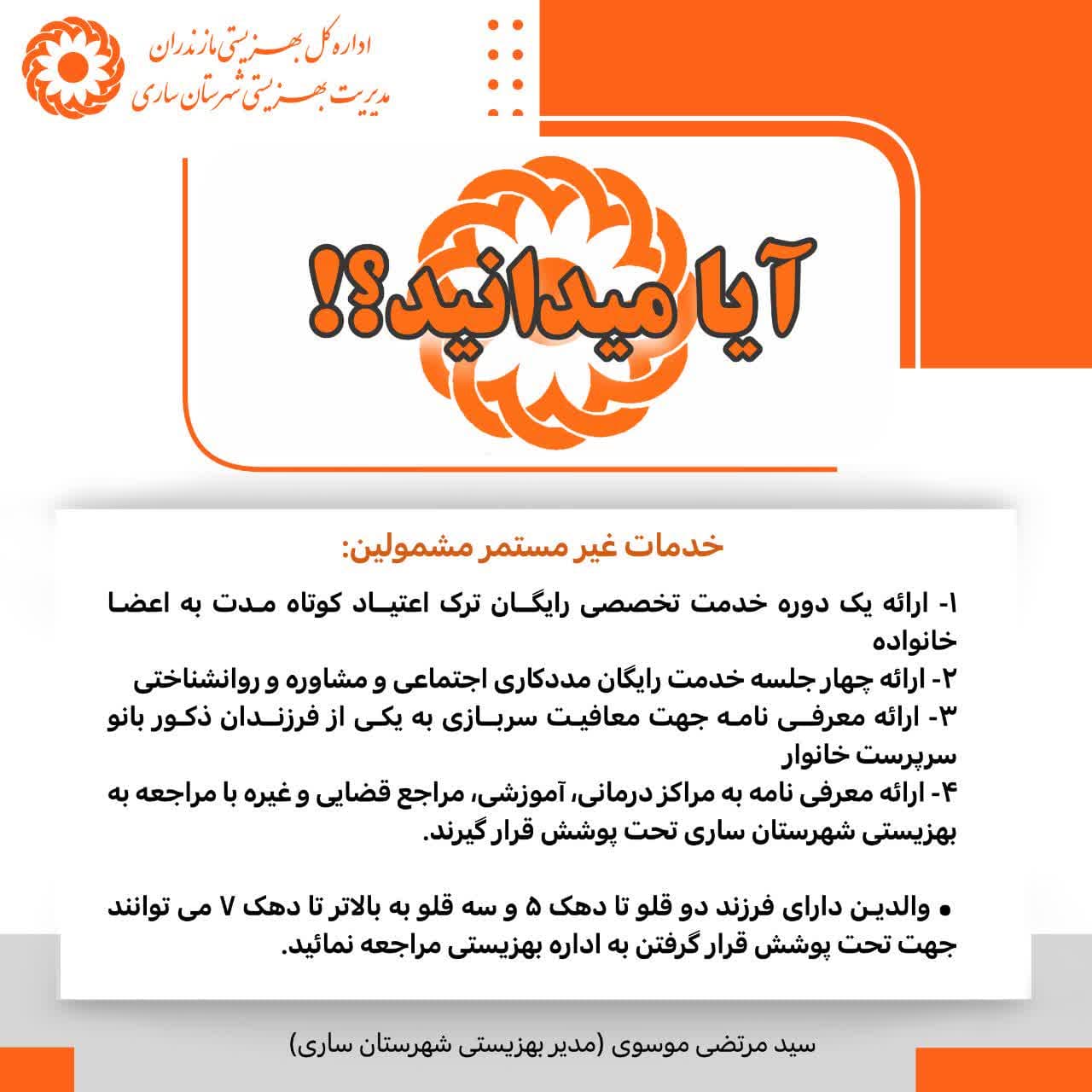 1- طبق ماده 25 قانون جامعه برای والدین شاغل در دستگاه های دولتی که دارای فرزند معلول شدید و خیلی شدید باشند تخفیف 50 درصدی با معرفی از طرف بهزیستی انجام می شود.
