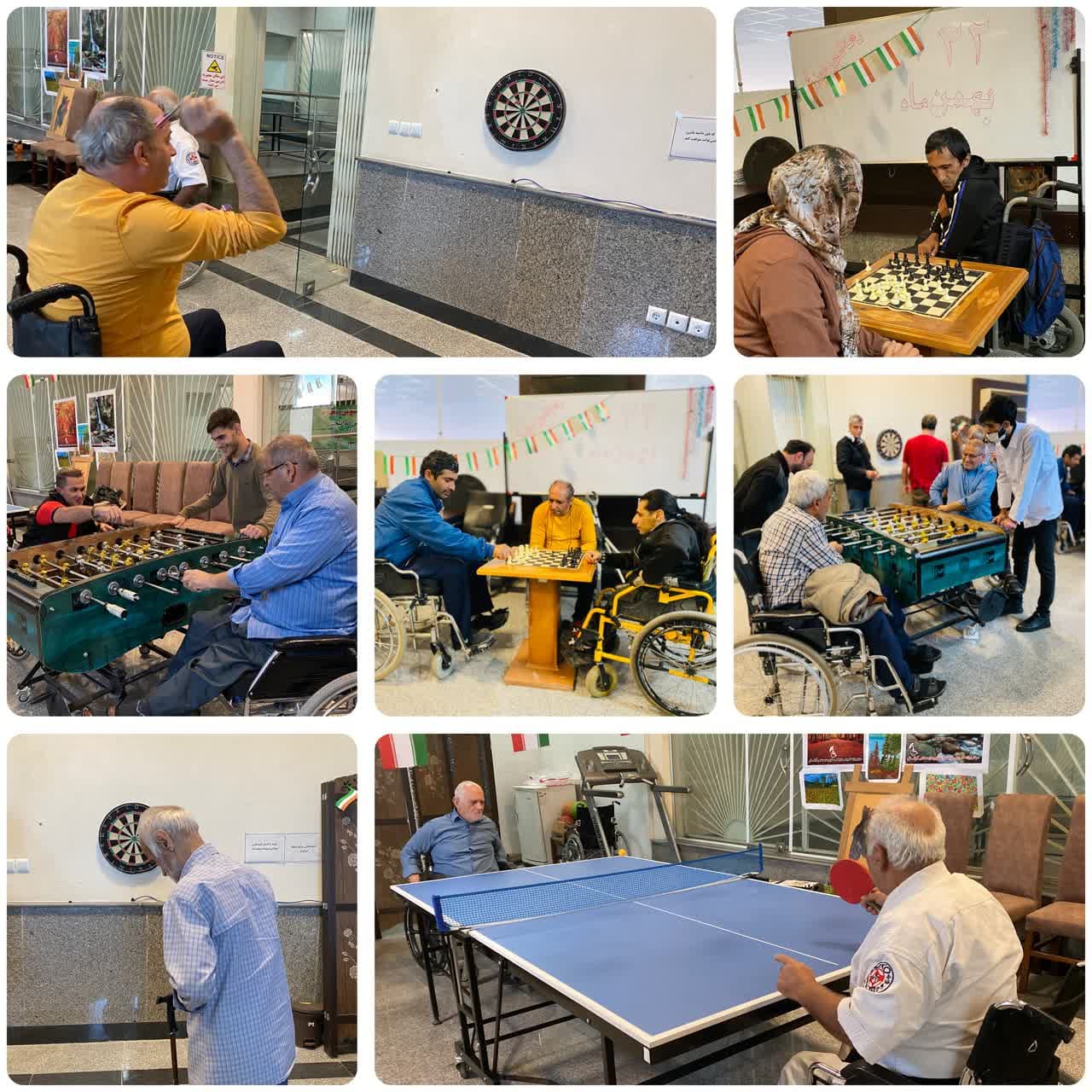 بمناسبت دهه فجر و چهل و پنجمین سالگرد پیروزی انقلاب اسلامی ، مسابقات ورزشی دوستانه در رشته های شطرنج، تنیس روی میز، فوتبال دستی و دارت در مرکز روزانه آموزشی توانبخشی معلولین ضایعه نخاعی آرامش برگزار گردید.