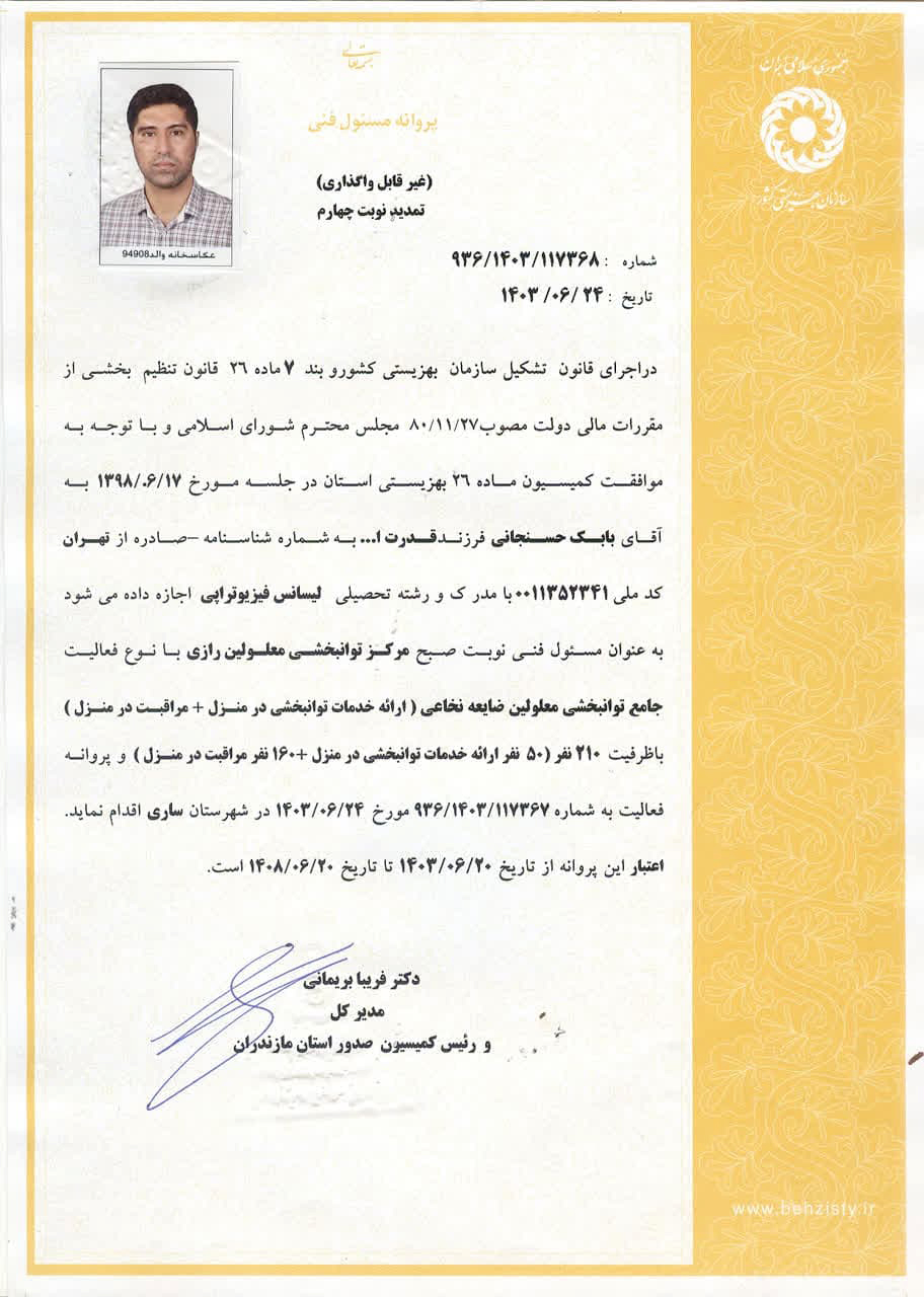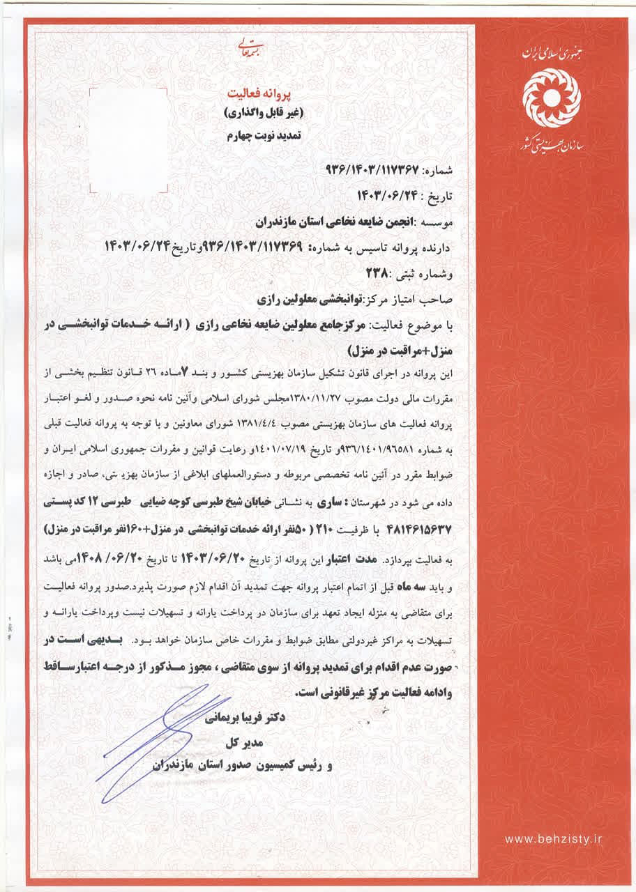 مجوز فعالیت در مرکز جامع معلولین ضایعه نخاعی رازی